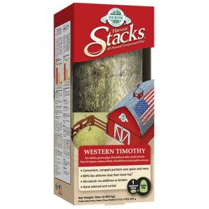Oxbow Harvest Stacks zijn de nieuwste hooi vorm. Met behulp van speciale compressietechnologie transformeren we 100% natuurlijk, met de hand gesorteerd Oxbow Western Timothy-hooi in compacte, gemakkelijk te voeden porties die 80% minder stof in de lucht produceren dan los hooi.