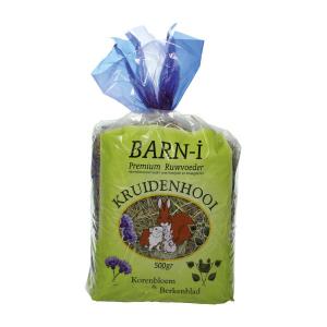 In de natuur zijn konijnen en andere kleine knaagdieren een groot gedeelte van de dag bezig met het verzamelen van hun voeding. Zij zijn in staat om in ieder seizoen een gevarieerd menu samen te stellen, precies wat het dier nodig heeft. Een tam konijn of knaagdier is voor zijn voeding afhankelijk van zijn verzorger. Deze heeft dan ook de zware taak de juiste keuzes te maken. Om het maken van de keuze wat te vergemakkelijken heeft Barn-i aan zijn premium ruwvoeder kruiden toegevoegd, zoals uw huisdier dat in de vrije natuur ook zou opzoeken. Naast de keuze van de eerste kwaliteit weide hooi, is rekening gehouden met de specifieke eigenschappen van de kruiden. U kunt naar wens variëren tussen de verschillende smaken.