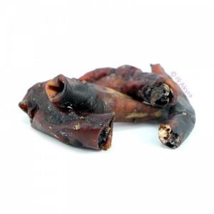 Dit zijn smalle harde pijpjes kamelenaorta. De stukken zijn hard dus de hond heeft er even werk mee.