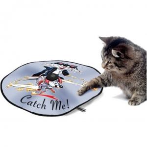 Elektrisch kattenspeelgoed. Leg de cirkelvormige stof over de motor, stel op het middenstuk een van de vier snelheden in en de staaf draait onder de stof variabel in het rond. Katten zijn dol op dit ritselende verstoppertje spelen.