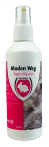 Vacht, huid of vieze plekken eerst goed schoonmaken. Spray Maden Weg over de te behandelen gebieden.