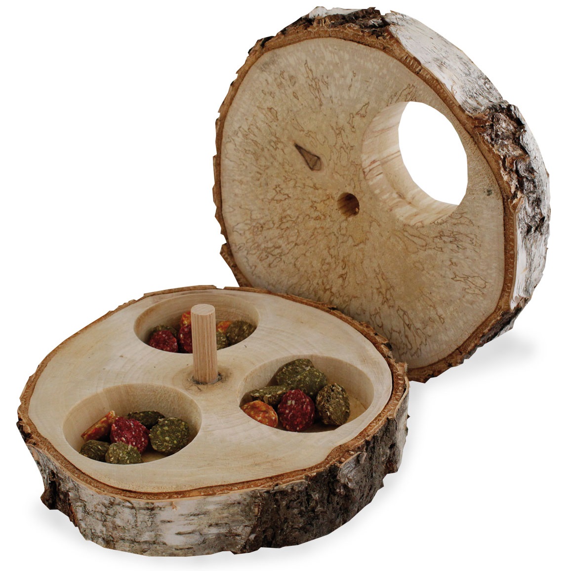 Natuurlijk hardhouten speelgoed voor konijnen en knaagdieren, die de intelligentie bevordert.