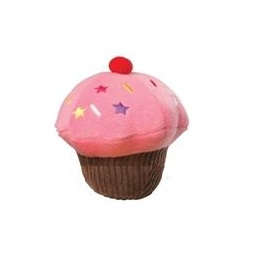 Deze cupcake is niet om op te eten, maar dat maakt hem niet minder leuk. Deze roze geglaceerde cupcake-knuffel bevat een kunststof squeaker en ruikt, als kerst op de taart, naar vanille.