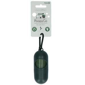 Deze mooie dispenser is gevuld met 1 rolletje (15 zakjes) PoopyGo poepzakjes.