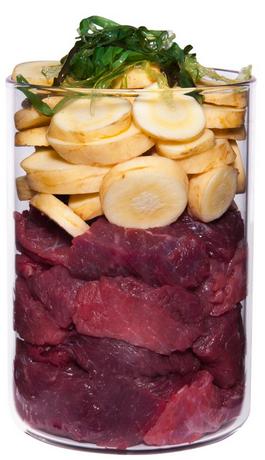 Ingrediënten: 60% struisvogel spiervlees, 36% pastinaak, lijnzaadolie, zeewier.