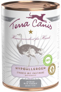 Terra Canis Hypo-allergeen werd ontwikkeld in samenwerking met Dr. Bucksch, een dierenarts voor kleine dieren met een extra kwalificatie in de dermatologie. Alleen puur vlees van 1 enkele, zeldzame eiwitbron wordt gebruikt bij deze maaltijden, samen met 1 type groente. De meest voorkomende allergene ingrediënten worden zo vermeden.
