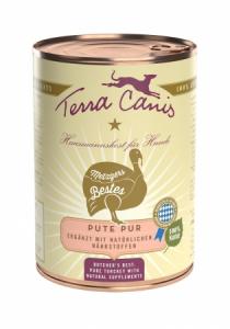 Puur vlees is heerlijk, gemaakt door de Terra Canis slager, Schäbitz uit München van 100% levensmiddelen kwaliteit producten, bestaat voor 97% uit vers vlees van de spieren en het hart, evenals de vitaminerijke lever van een kalkoen.