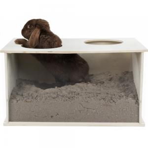 De Trixie Graafbak Voor Konijnen 58 x 38 x 30 cm is een leuke zandbak voor jouw konijn, met twee ingangen, zand en plexiglas voor goede zichbaarheid. Graven is een natuurlijke behoefte voor konijnen: in de natuur graven konijnen veel, om holen en gangen te graven en eten te zoeken. Jouw konijn zal daarom veel plezier beleven aan deze leuke graafbak, zonder dat jouw hele huis onder het zand komt te liggen! Deze graafbak is gemaakt van hout en eenvoudig te monteren door het insteeksysteem. Een plexiglas plaat aan de voorzijde biedt jou zicht op jouw konijn terwijl in de bak zit en door de deksel bovenop blijft het zand binnenboord. Het deksel is voorzien van twee ingangen zodat jouw konijn ten alle tijden uit de bak kan klimmen. Jouw konijn zal zich opperbest vermaken in deze leuke graafbak! Goed tegen verveling en voor voldoende lichaamsbeweging.